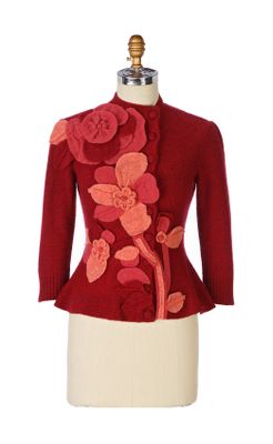 I love the felted wool applique petals and flowers. I must add some of these to my old sweaters and make some colorful pins for all my black jackets and coats.