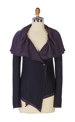 This had an ingenious design. Once opened up it was just a large trapezoid, wider at the bottom with two inset sleeves located halfway down. The two layers of very thin knit were attached only through the sleeves, the button area at the right and then tacked together at the same place on the left front. Check out the quick sketch I made of its construction in the dressing room: